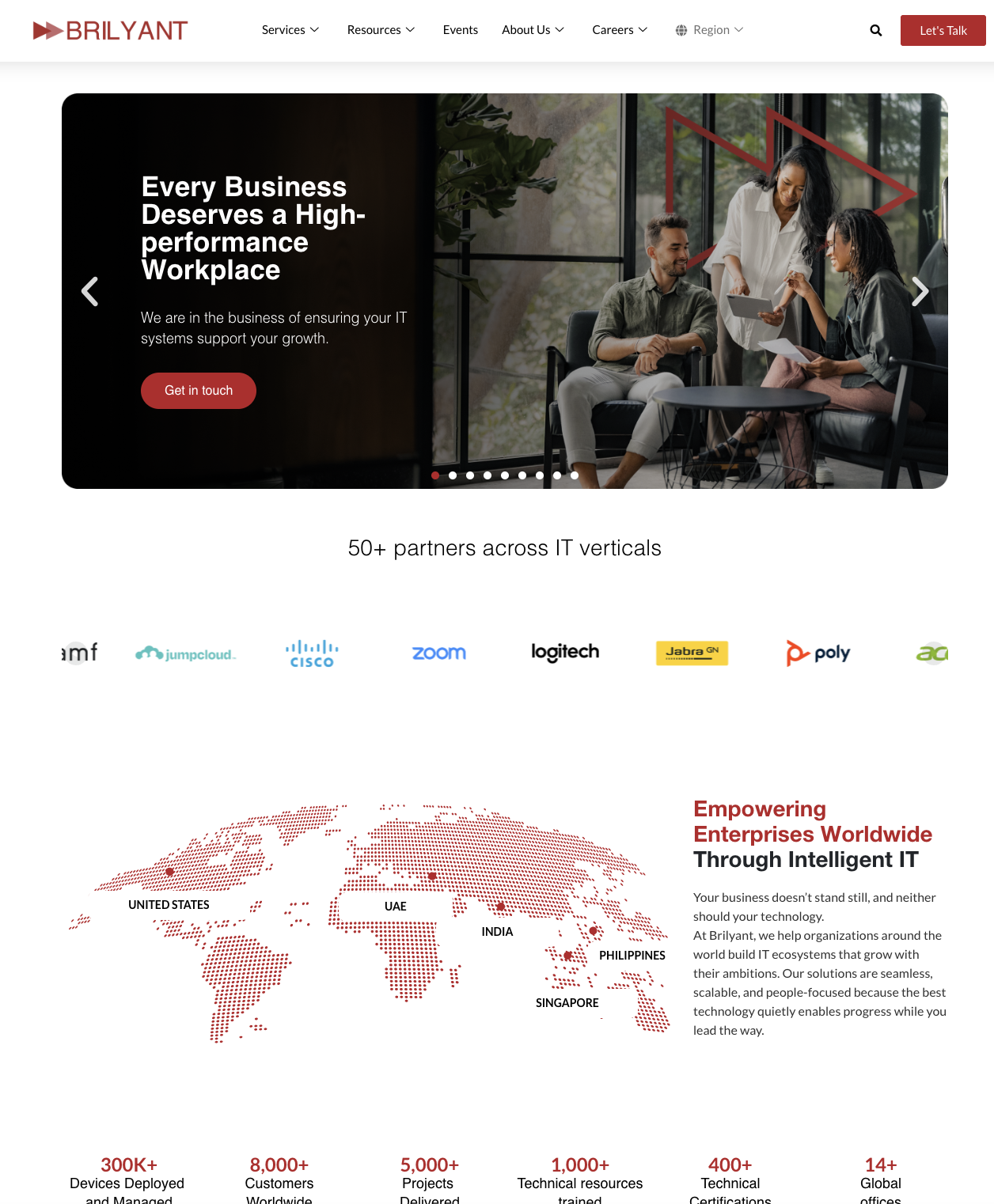 Brilyant Plus: The premium tier package includes Brilyant Play with Security and Collaboration tools, and an IT consultant for training, enablement, and deployment.
